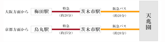 安威の交差点を通過し北進約500m先、左手に天兆園があります。