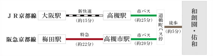 | 阪急上牧駅 | (1)(1A) JR高槻駅南行き | 道鵜町 (下車徒歩5分) |